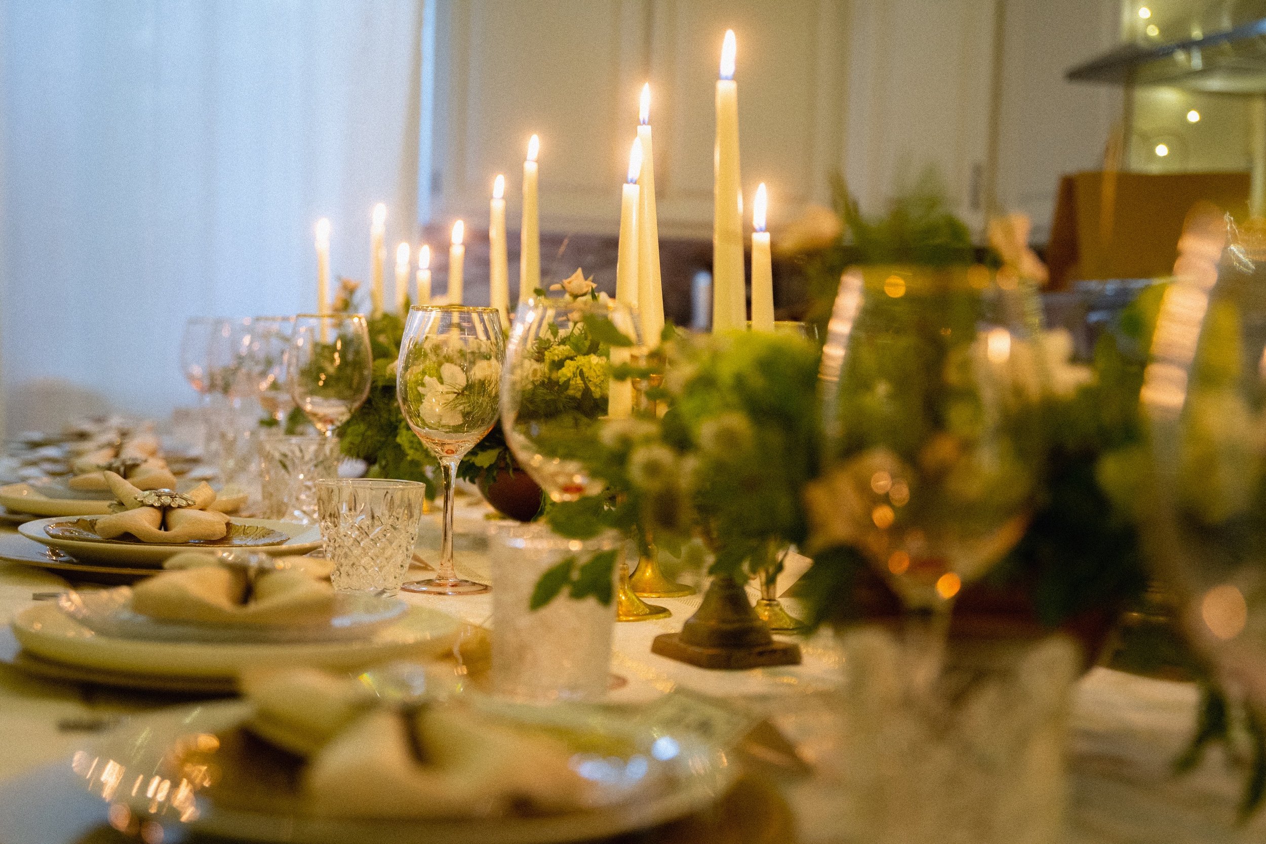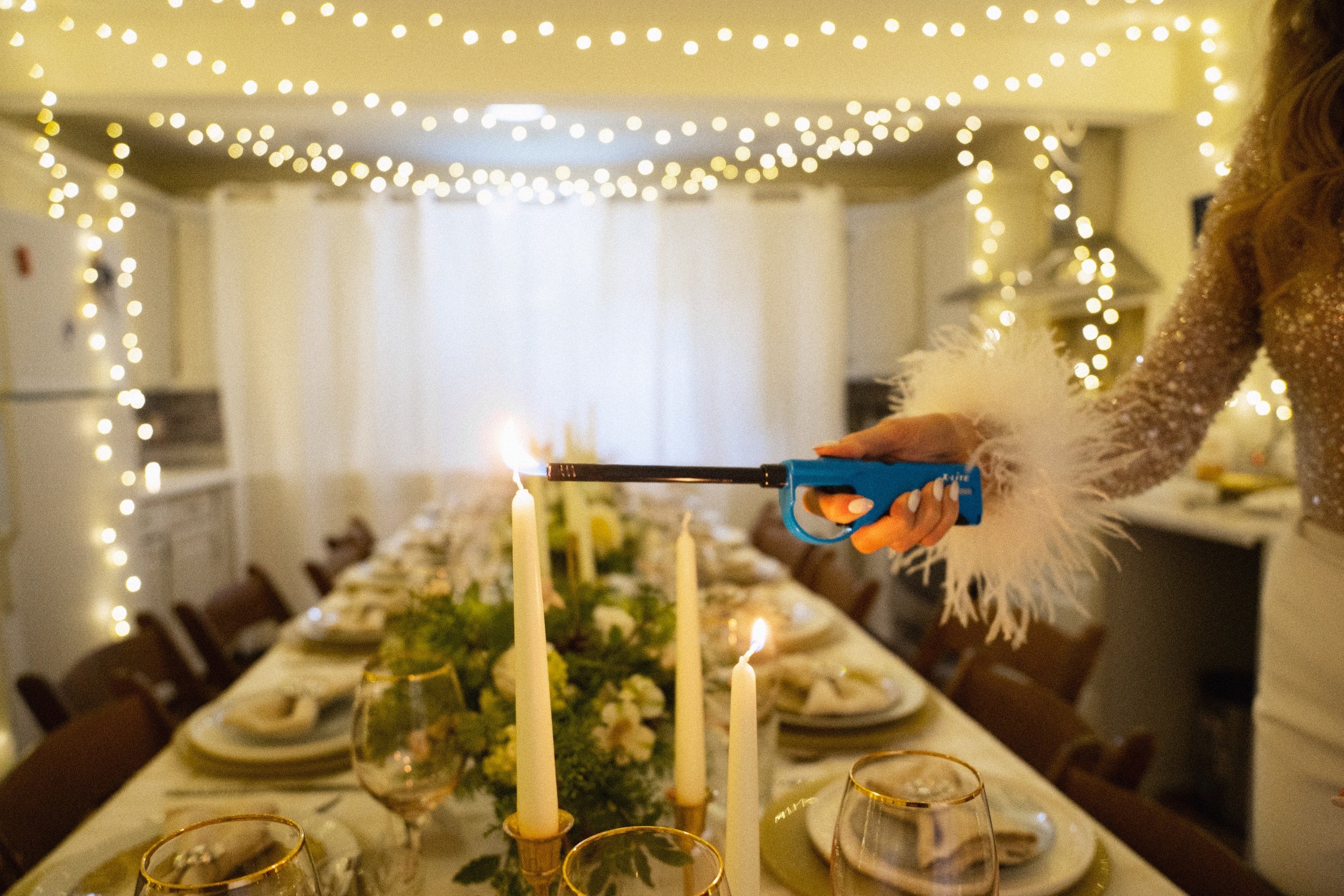 When hosting a dinner party this is one of the easiest ways to set the mood. I personally love to add a mix of candles and fairy lights. It creates a warm, cozy ambiance that can’t be matched. Using candlesticks, alternatively can add height and dimension to the table. For fairy lights, think of adding them on the walls of your room to create a completely different environment.