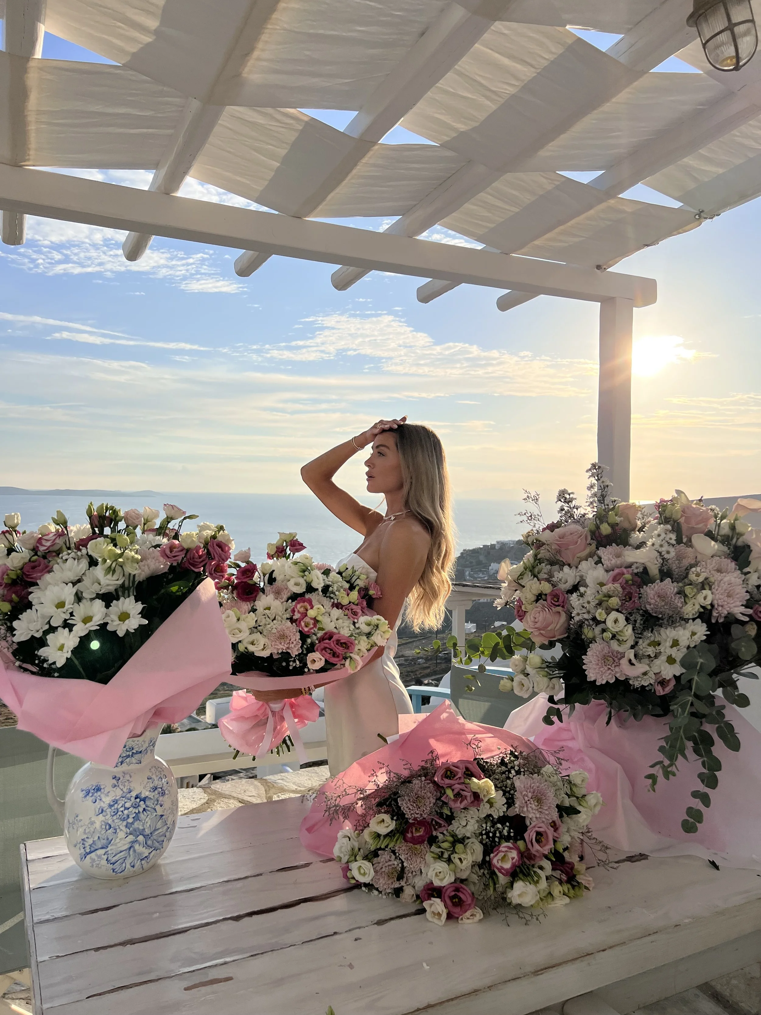 Arrived at our villa for my bachelorette week to these from my future husband 🤍